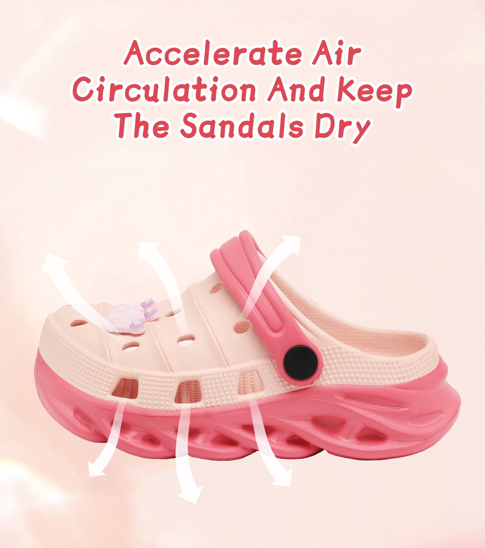 - Upper and side hole accelerate air circulation and keep the sandals dry. The kids' clogs can be customized with shoes charms to reflect their own flair.