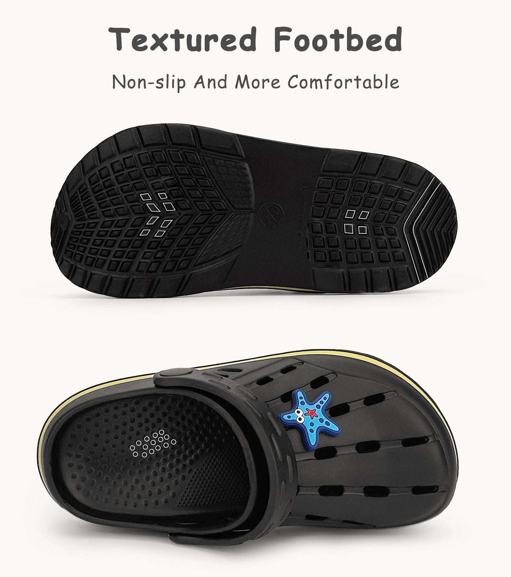 - Cute Design: Provide different lovely patterns and colors, these kids clogs have a glitter band around the mid sole. Kids will love to play around in their exclusive shoes